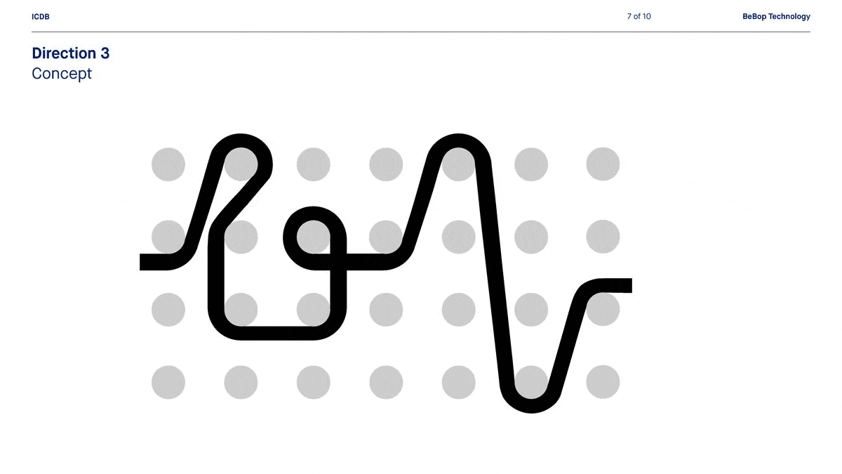 The chosen concept describes what BeBop provides in visually abstract terms. The logo is constructed in the same way the core BeBop product operates. It starts with a limitless grid of dots. The dots represent the BeBop operating system—a limitless playing field.